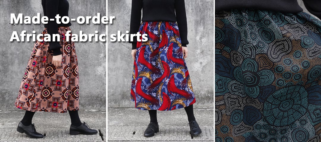 【受注制作】アフリカ布のギャザースカート(ドリーミング)アフリカンプリント アフリカンファブリック