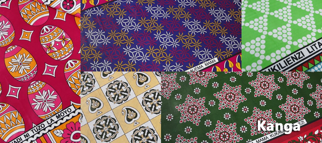 カンガ|ダマスク グラスグリーン × マルーン × キャロットオレンジ