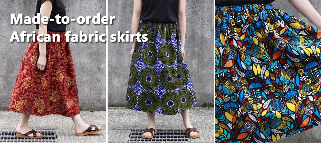 【受注制作】アフリカ布のギャザースカート( サークルドット )アフリカンプリント アフリカンファブリック