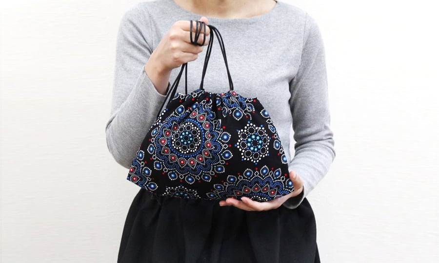 アフリカ布の巾着袋( モノクロ フラワー )インナーバッグ / 小物入れ / コップ袋 / 内袋