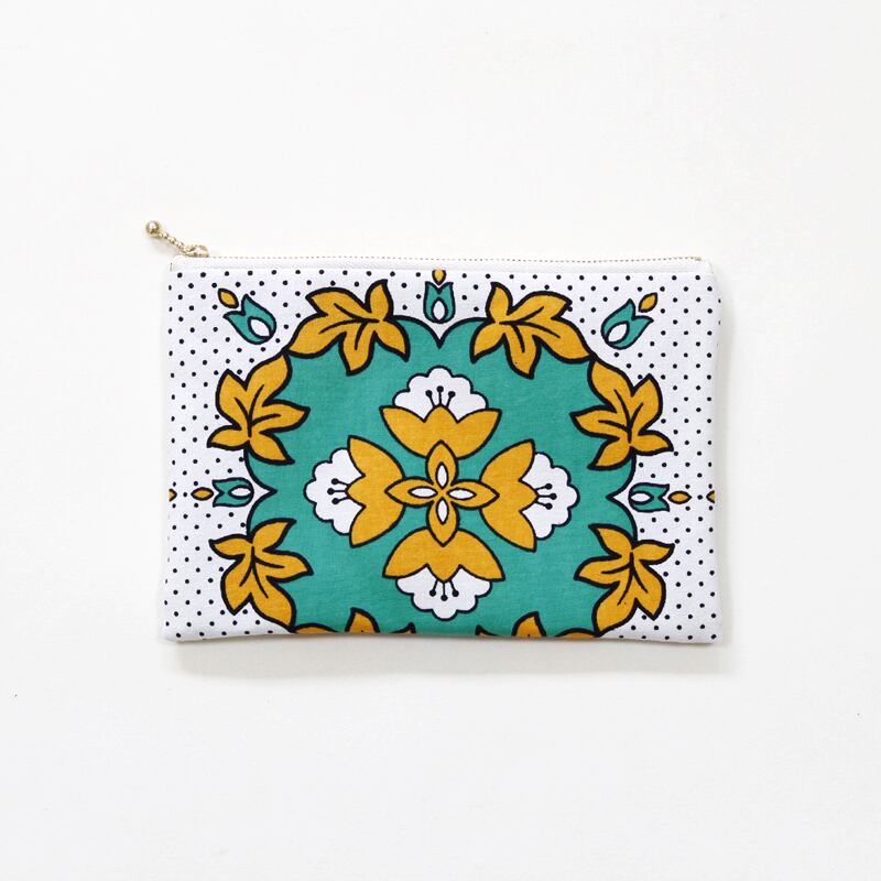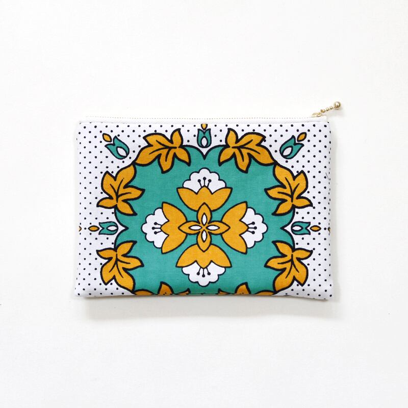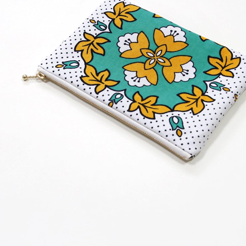 カンガのフラットポーチ( フラワー )アフリカ布ポーチ
