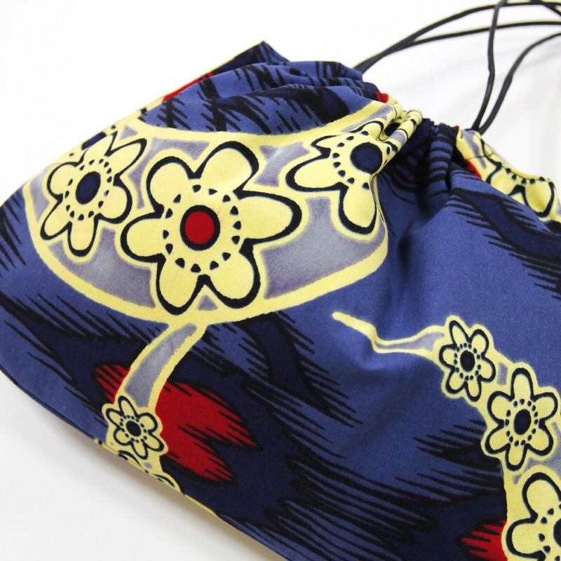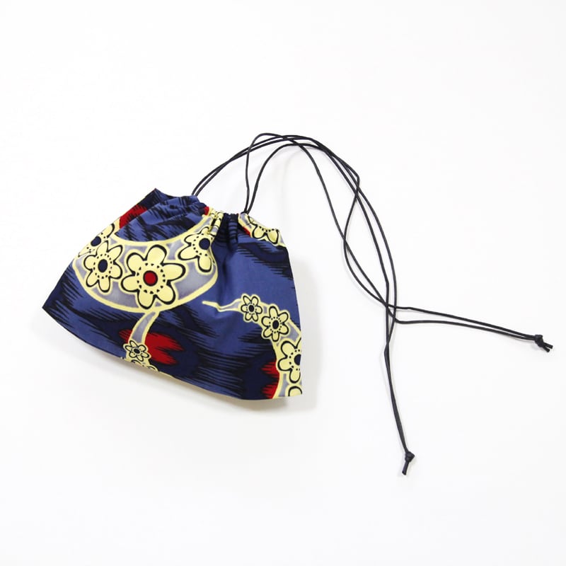 月と星柄の巾着ショルダー( アフリカ布 )斜めがけ たすき掛け インナーバッグ