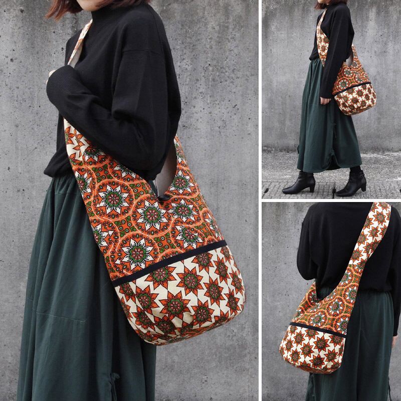 アフリカ布のショルダーバッグ(カンガ)大きめ 斜めがけ たすき掛け ヨガ ピラティス