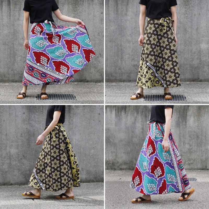 歩くとひらりと揺れる、軽やかでインパクトのあるカンガのラップスカート。