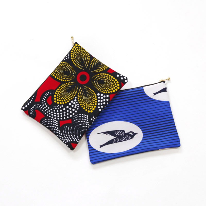 ツバメ柄のフラットポーチ|鳥 アフリカ布 アフリカンプリント