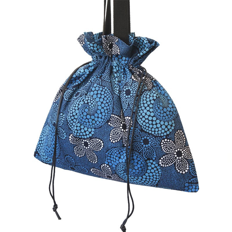 きゅっと縛って可愛く持てる、アフリカ布の巾着バッグ