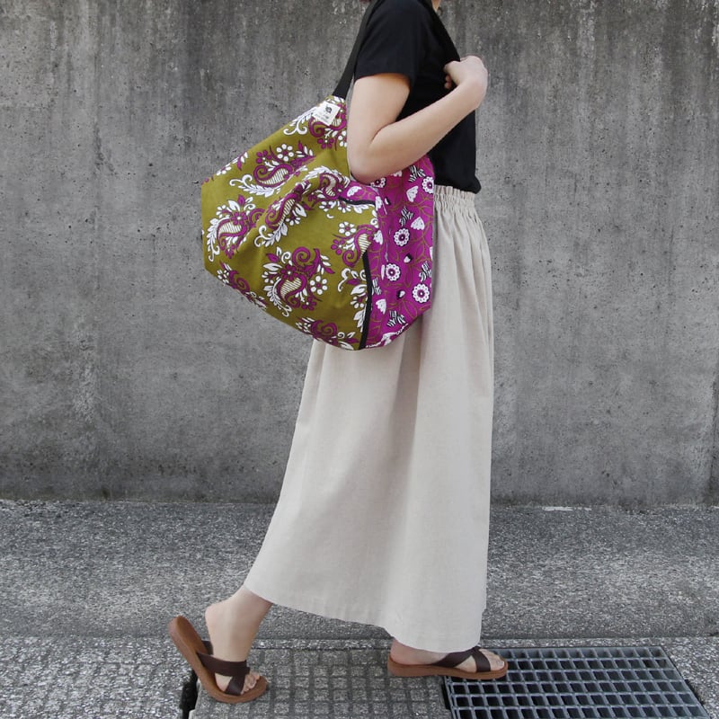 アフリカ布 カンガのマルシェバッグ( ボタニカル )肩掛け エコバッグ 買い物 ヨガ ピラティス