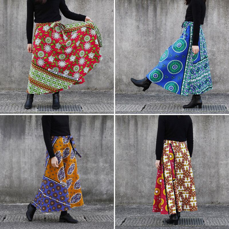 カンガの巻きスカート( アフリカ布スカート )ラップスカート ロングスカート