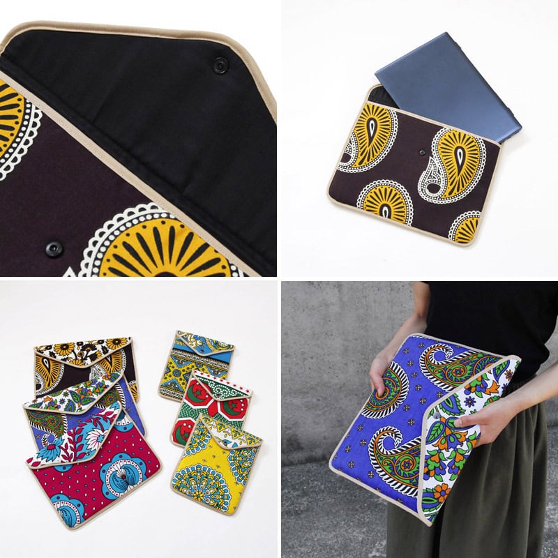 フラップ付き♪ 鮮やかなカンガのPCケース 13-14inc Laptop タブレットケース