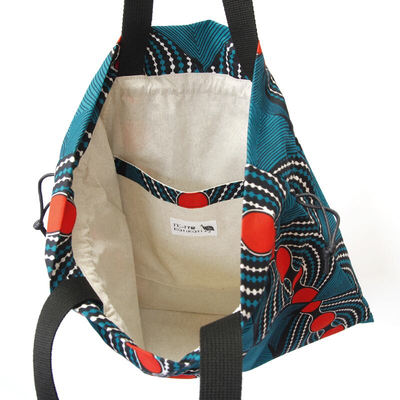 アフリカ布の巾着バッグ(アフリカンプリント)トート 大きめ
