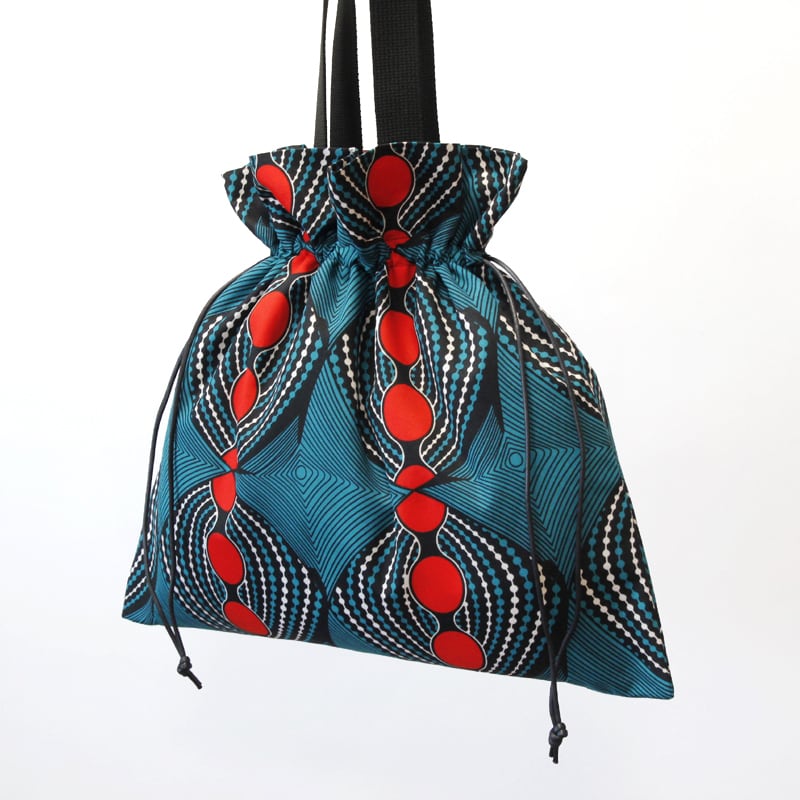 きゅっと縛って可愛く持てる、アフリカ布の巾着バッグ