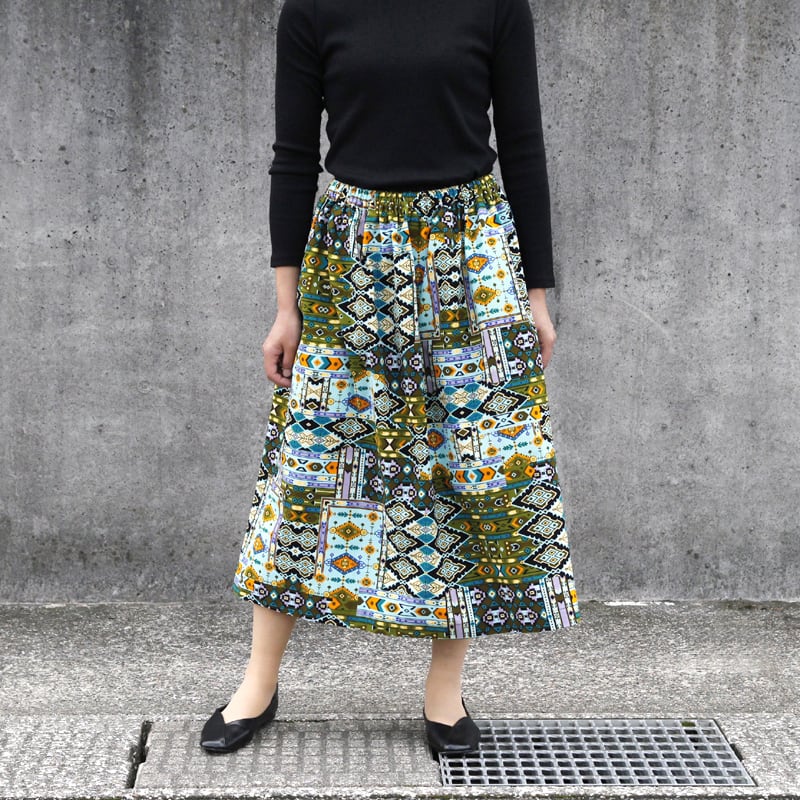 コーディネートがパッと華やぐ、アフリカ布のスカート