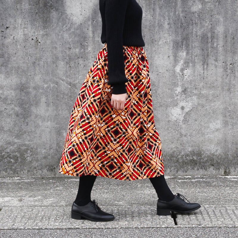 コーディネートがパッと華やぐ、アフリカ布のスカート