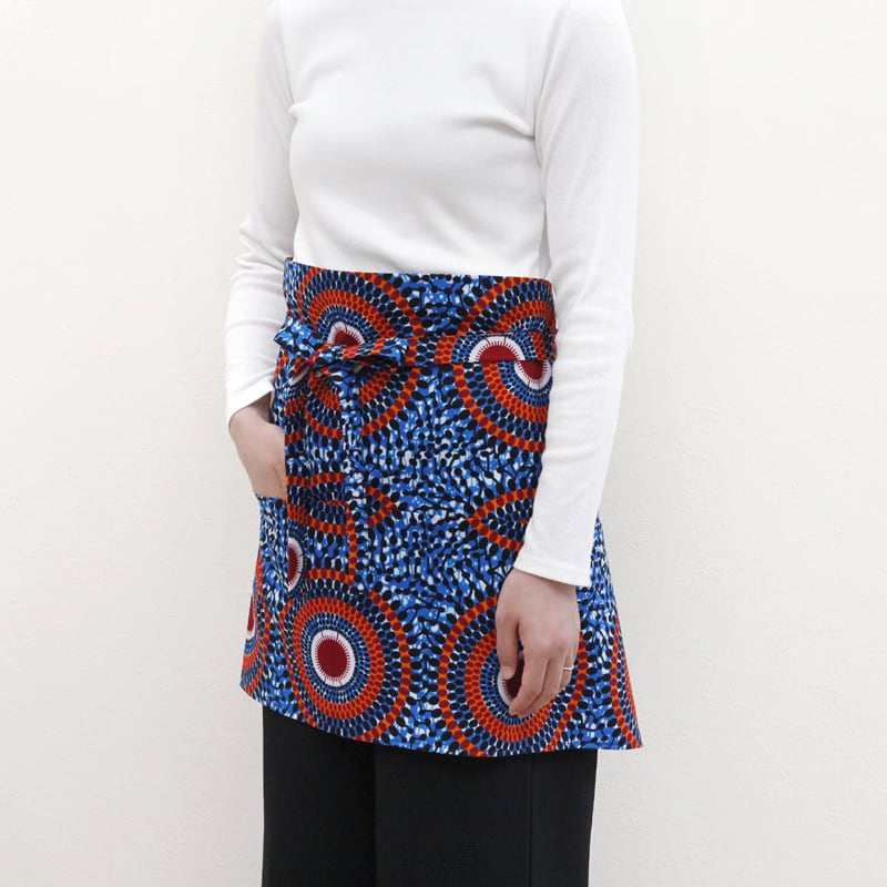 アフリカ布のカフェエプロン( サークルドット )アフリカンプリント 母の日 ギフト