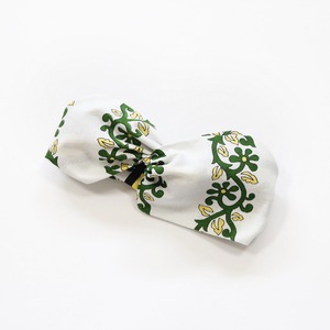 バックはゴム。締め付けが少なくリラックス感のある付け心地。広幅に仕上げているので、簡単なまとめ髪にもおすすめです。