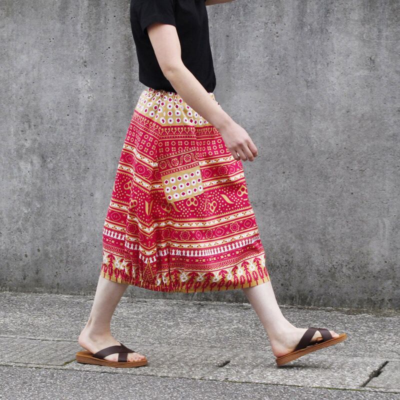水通しをしたカンガから制作しているので、最初からナチュラルな風合いを楽しんでいただけます。使い込むほどより柔らかな肌触りになってゆくスカートです。