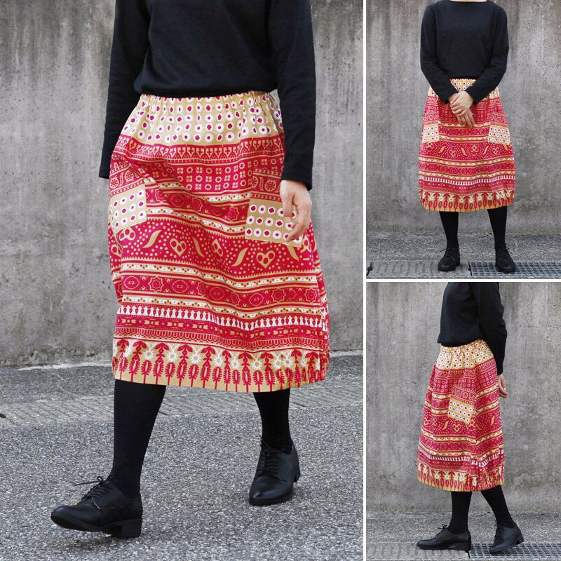 ふんわりラインが可愛いアフリカ布「カンガ」のバルーンスカート。