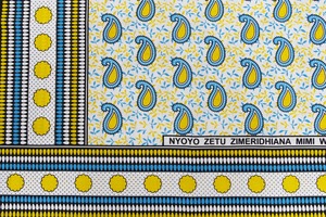 カンガ|ペイズリー ホワイト × イエロー × ターコイズブルー