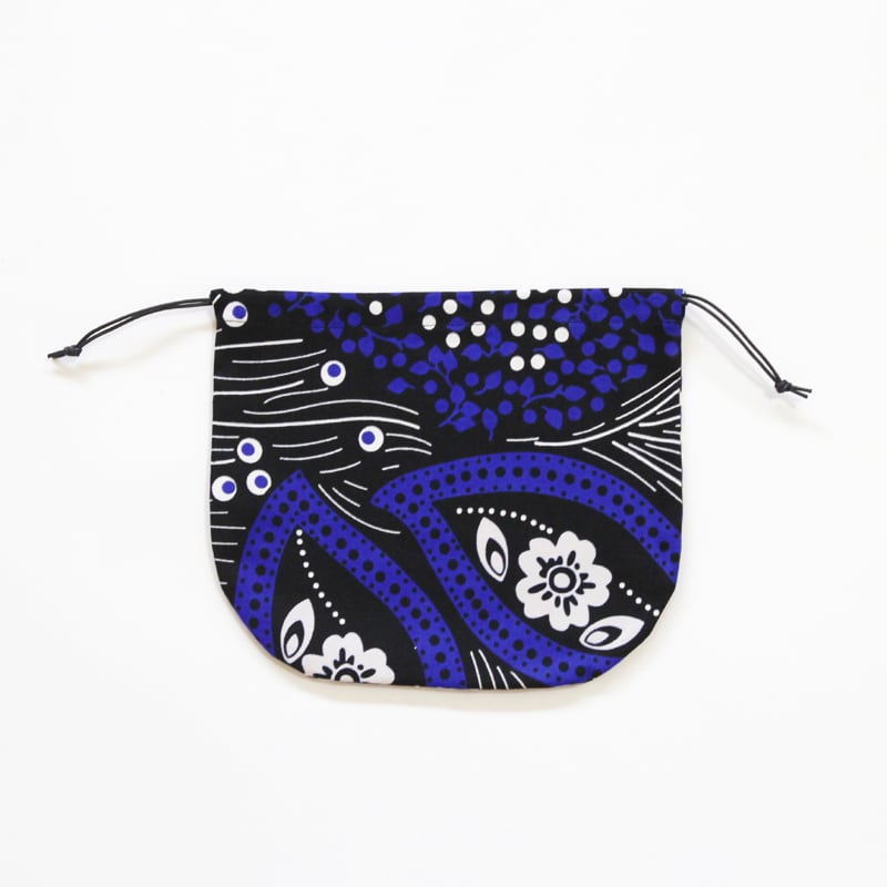 コロンとした形がかわいいアフリカ布の巾着袋。