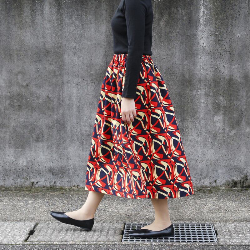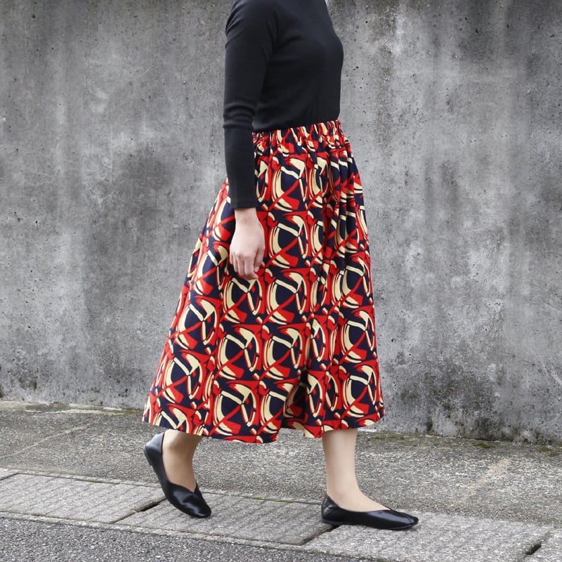 鮮やかな色彩とシルエットで魅せる、存在感のあるアフリカ布のスカート。コーディネートの主役となって、ロングシーズン活躍してくれるアイテムです。