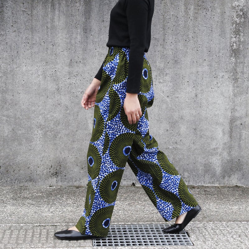 鮮やかな色彩際立つアフリカ布のイージーパンツ。