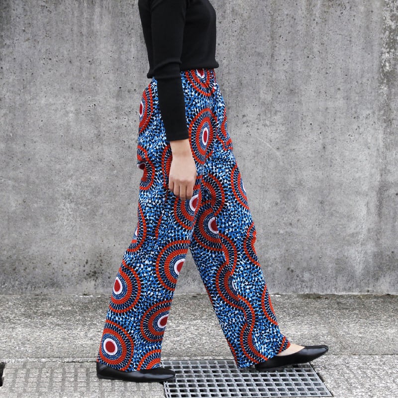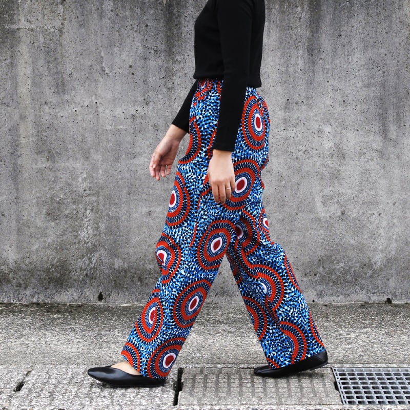 アフリカンプリントのイージーパンツ( ストレートシルエット )アフリカ布パンツ