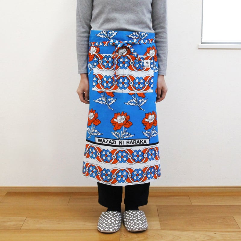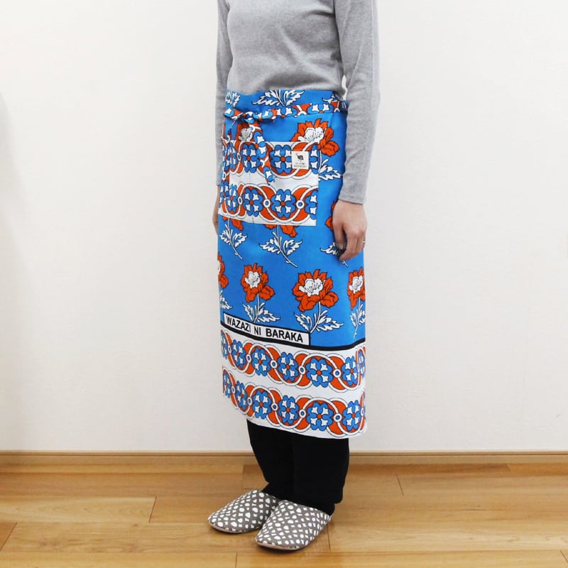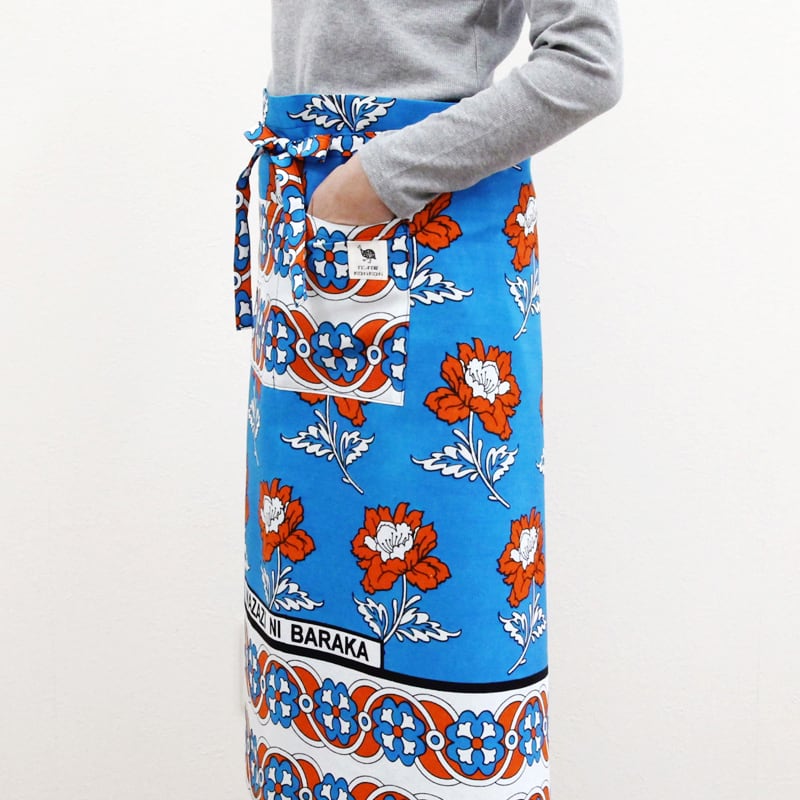 カンガのソムリエ・エプロン( ローズ 薔薇 )ユニセックス カフェ ロング キャンプ アウトドア