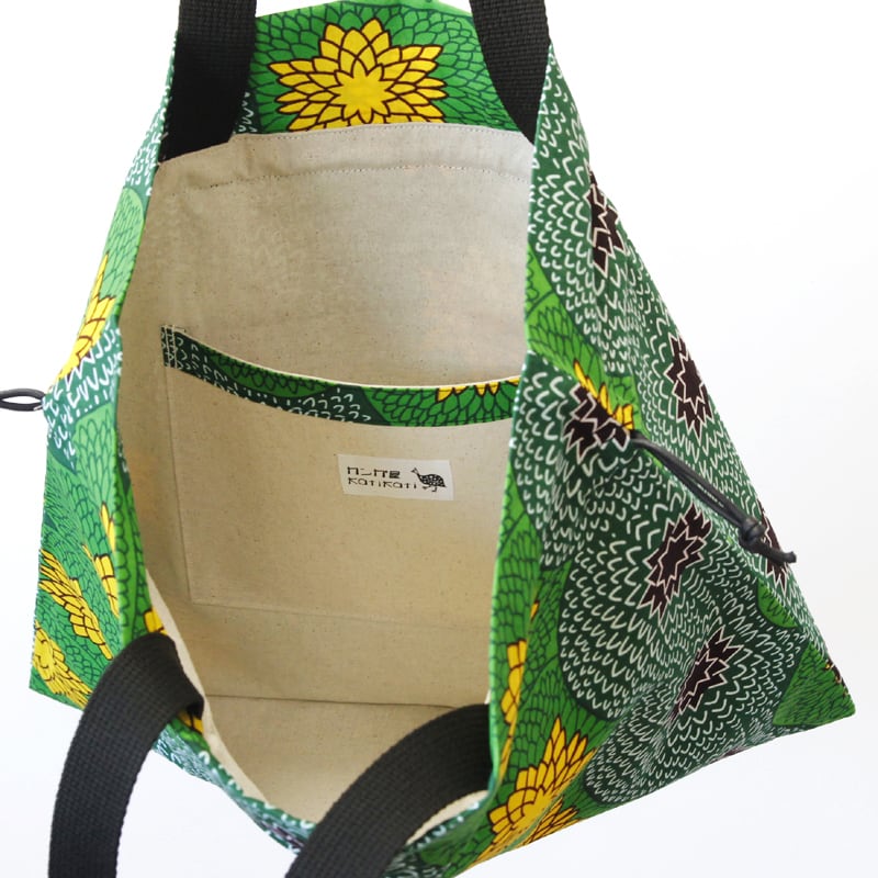アフリカ布の巾着バッグ(アフリカンプリント)トート 大きめ