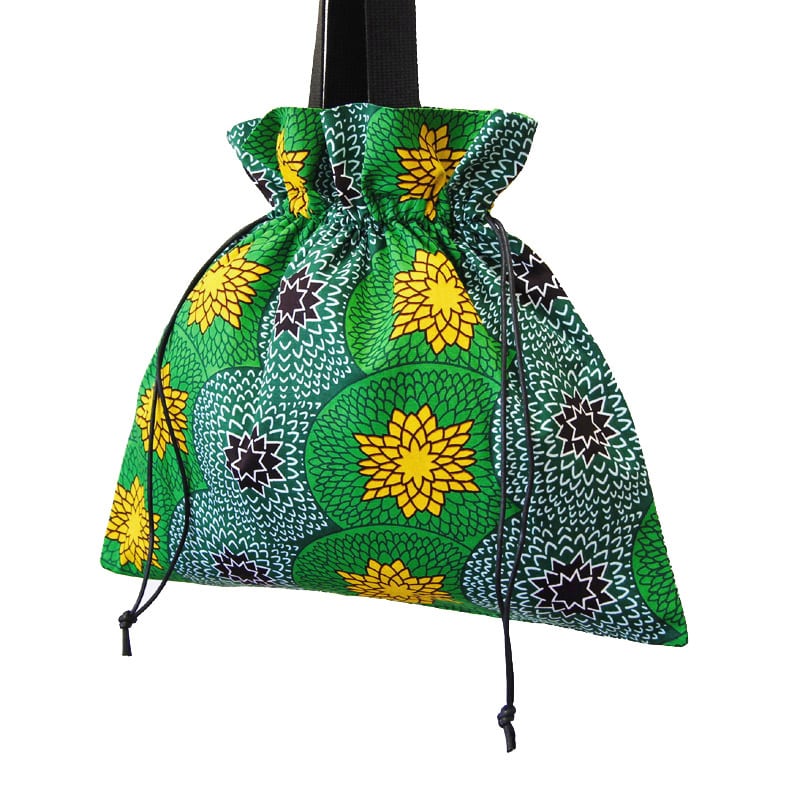 きゅっと縛って可愛く持てる、アフリカ布の巾着バッグ