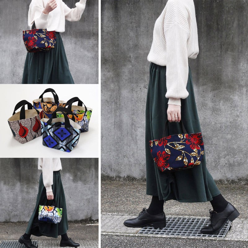 アフリカ布のランチトート( ボタニカル )アフリカンプリント / ランチバッグ