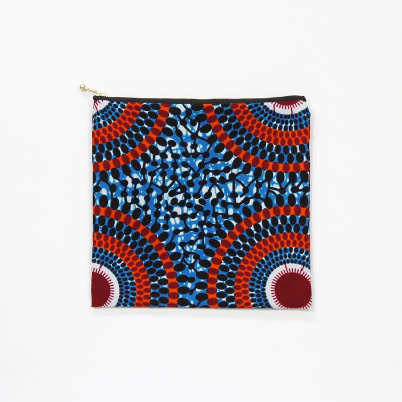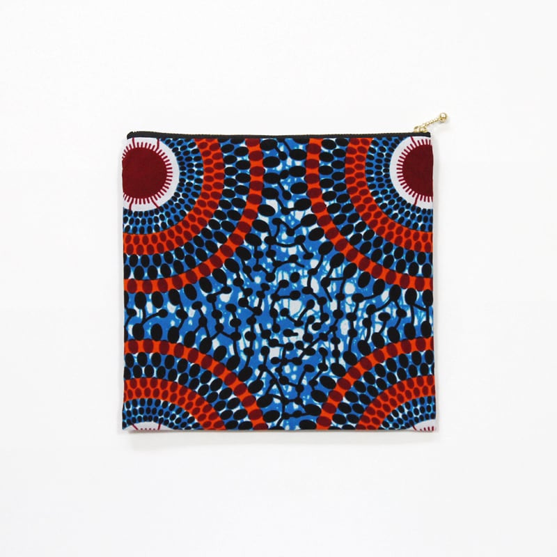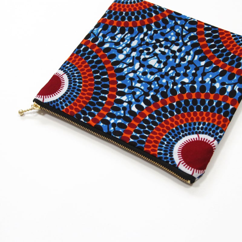 大容量・フラットポーチ( サークルドット )アフリカンプリント 化粧ポーチ マルチポーチ