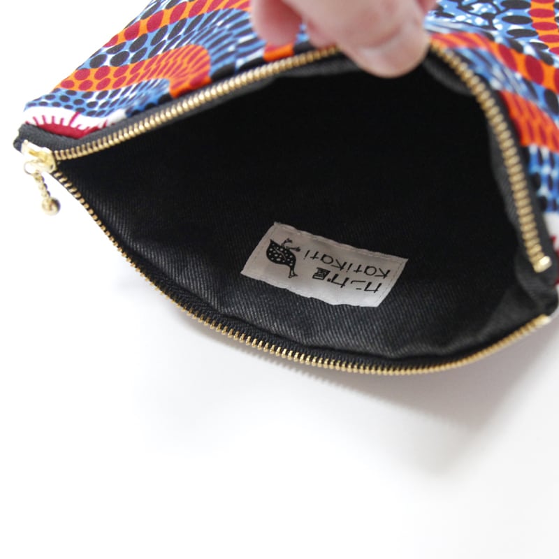 鮮やかで大容量、アフリカ布のフラットポーチです。