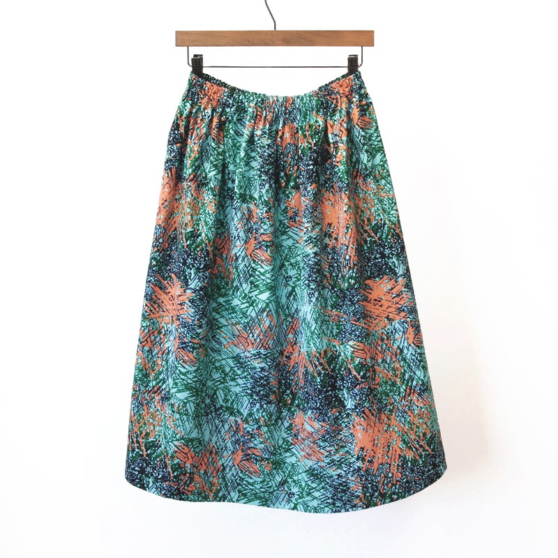 アフリカ布のギャザースカート( ペインティング )アフリカンプリント アフリカンファブリック