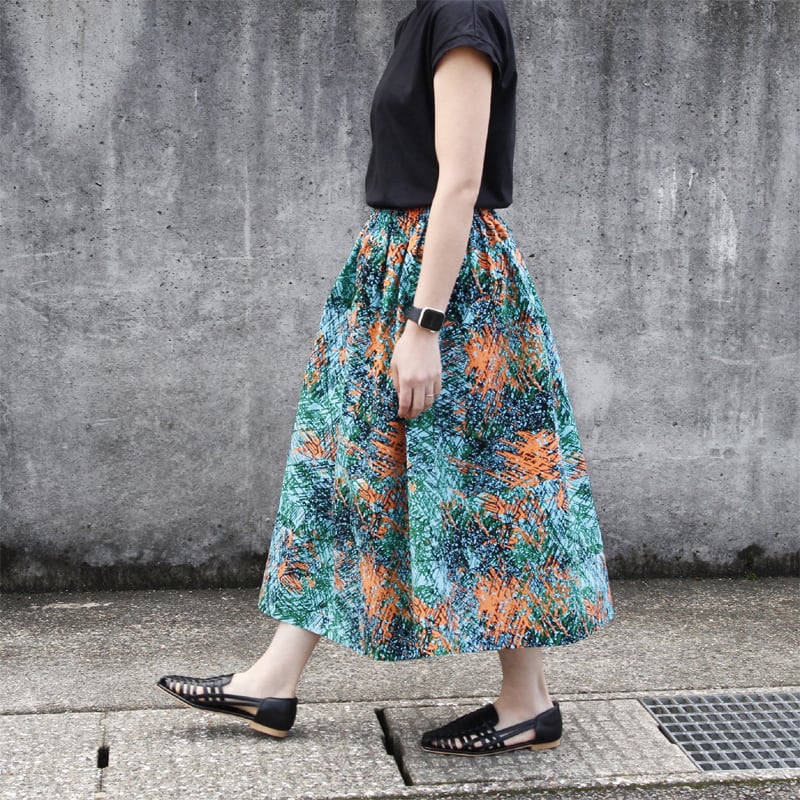 コーディネートがパッと華やぐ、アフリカ布のスカート