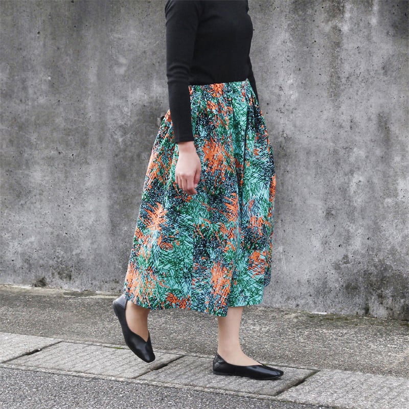 生地の分量をたっぷりとったボリューム感のある一枚で、年齢や体型を選ばないスカートに仕上げています。