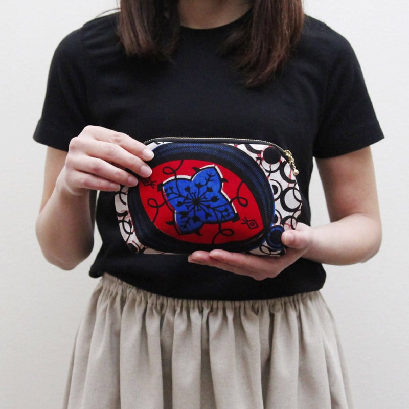 鮮やかな色彩際立つ カンガのポーチ。