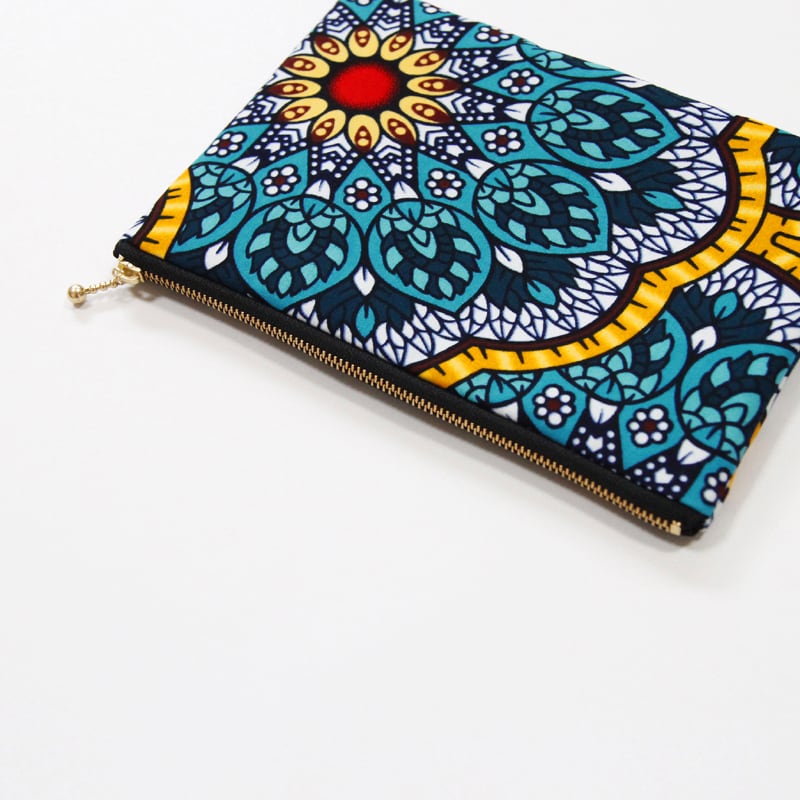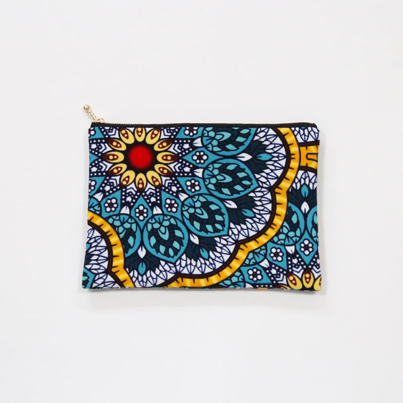 アフリカ布で作った、鮮やかなマチ無しフラットポーチです。