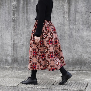 【受注制作】アフリカ布のギャザースカート(アラベスク)アフリカンプリント アフリカンファブリック