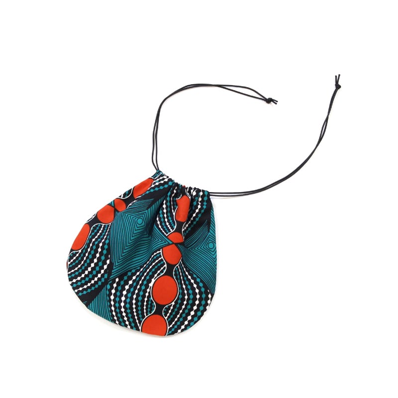 コロンとした形がかわいいアフリカ布の巾着袋。
