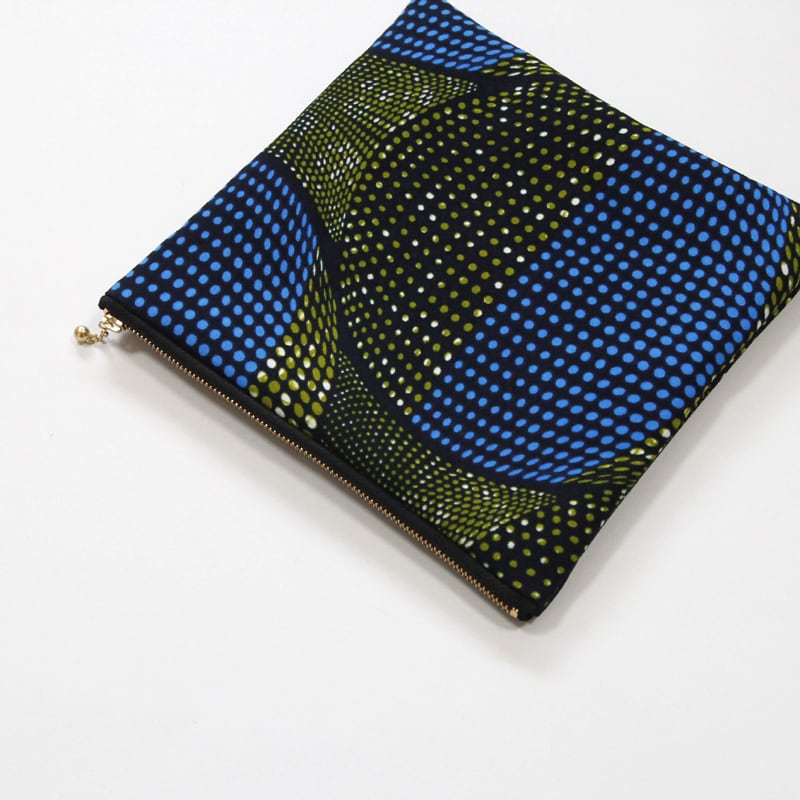 鮮やかで大容量、アフリカ布のフラットポーチです。