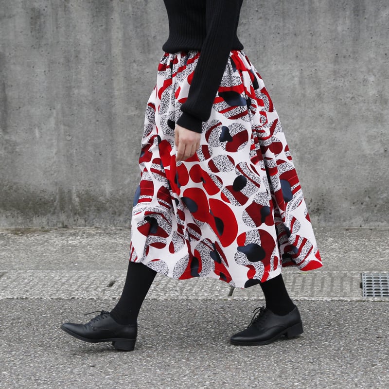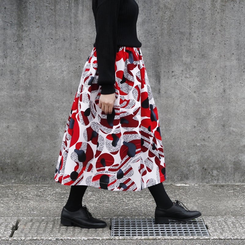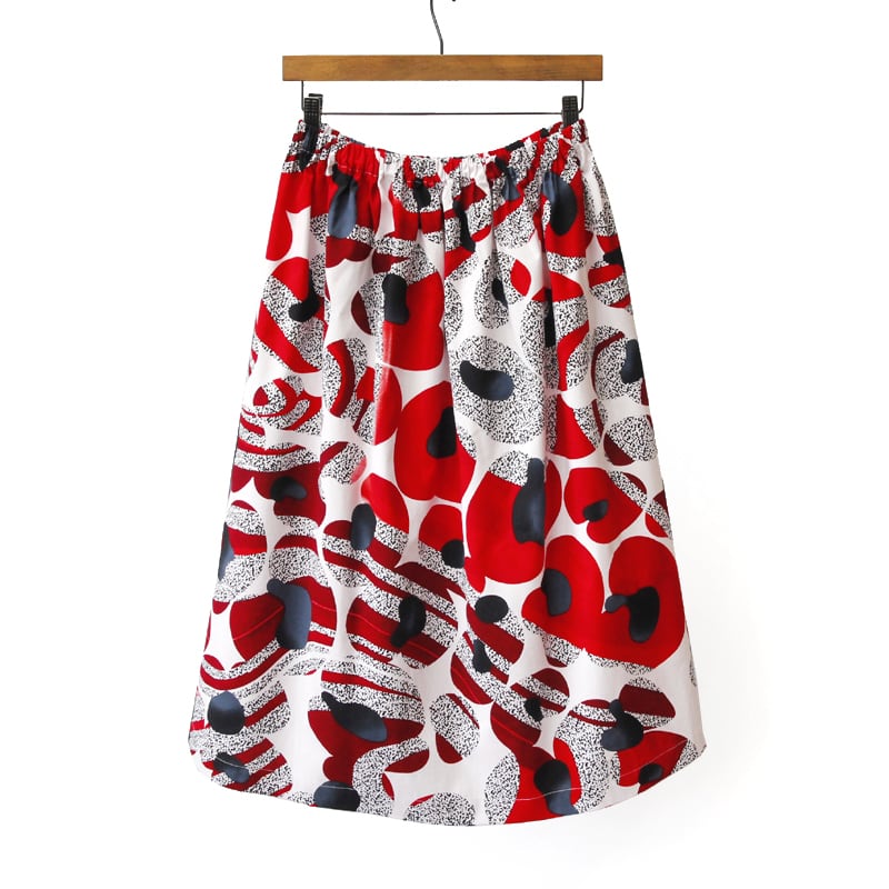 アフリカ布のギャザースカート(スカーレット×ホワイト)アフリカンプリント アフリカンファブリック