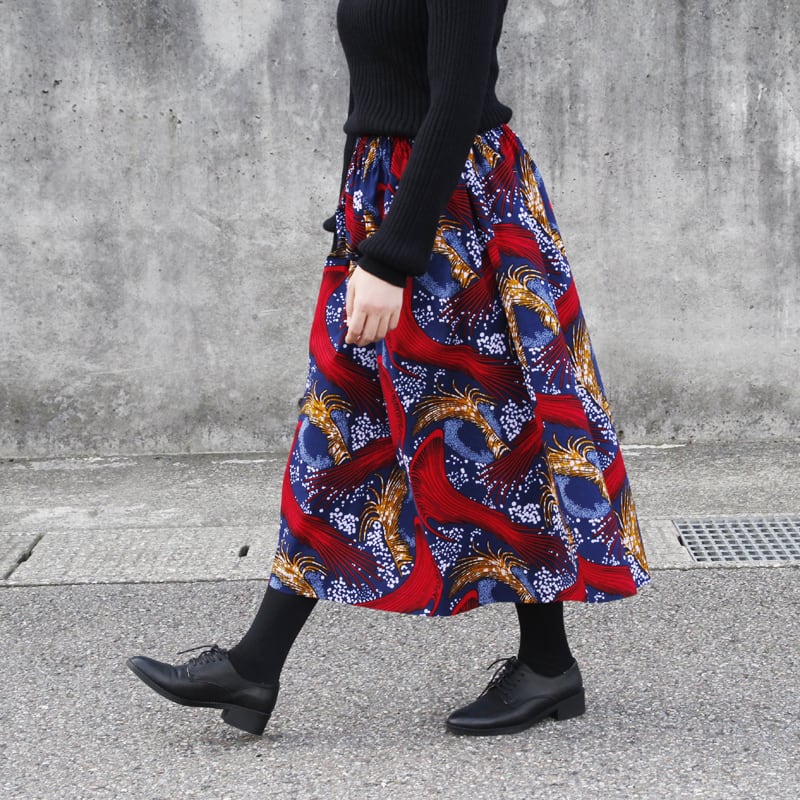 コーディネートがパッと華やぐ、アフリカ布のスカート