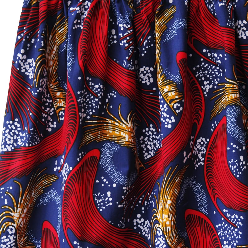 アフリカ布のギャザースカート(リーフ)アフリカンプリント アフリカンファブリック