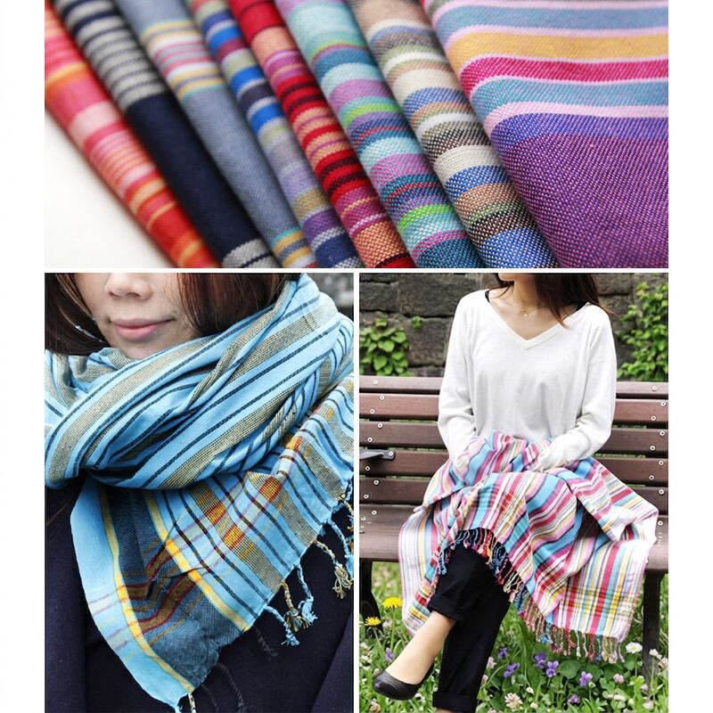 春夏用のショールやストール、ビーチなどの日よけとして、ファッション性だけでなくさまざまなシーンで実用的に活躍してくれます。