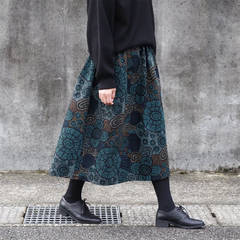 生地の分量をたっぷりとったボリューム感のある一枚で、年齢や体型を選ばないスカートに仕上げています。