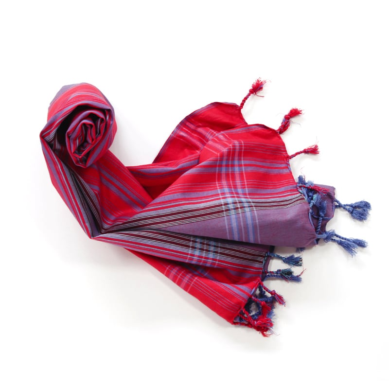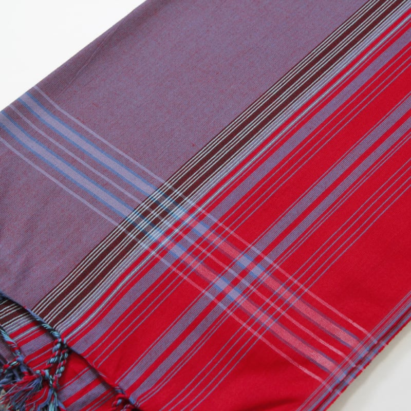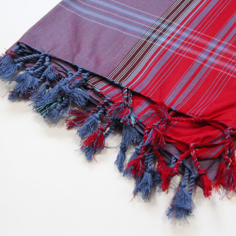 鮮やかな色合わせや単調ではないストライプ。アフリカらしいカラフルな色合わせなのに、決して派手ではなく、不思議と落ち着いた感じのする独特の美しさがキコイの魅力です。端はフリンジ処理が施され、可愛らしい雰囲気に。