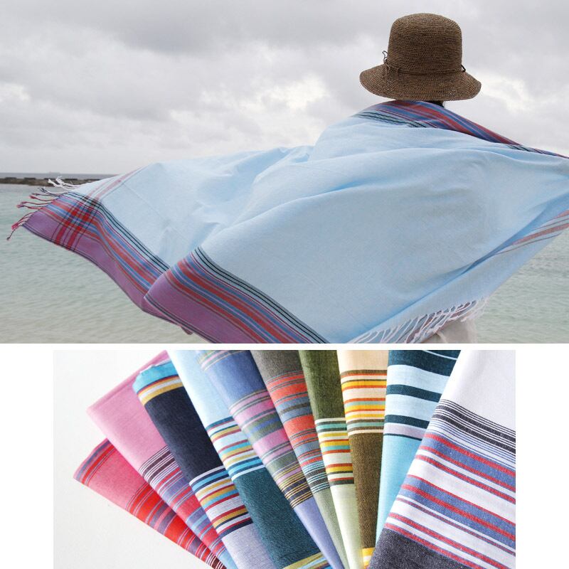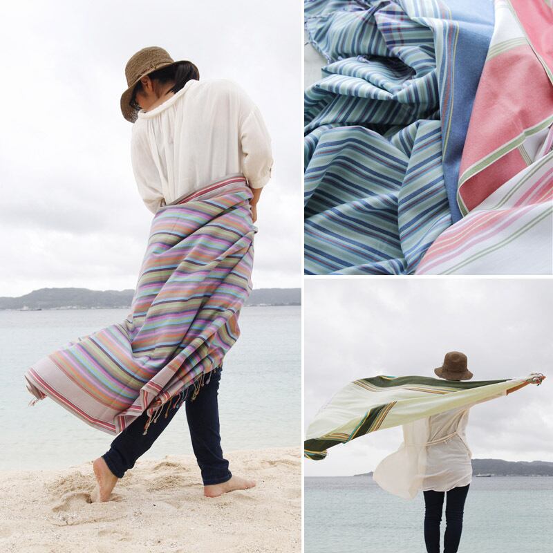 春夏用のショールやストール、ビーチなどの日よけとして、ファッション性だけでなくさまざまなシーンで実用的に活躍してくれます。