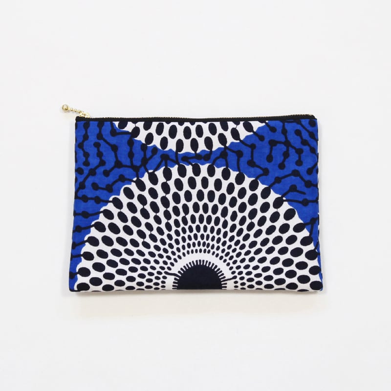 アフリカ布のフラットポーチ ( ドットサークル ) アフリカンプリント 手帳ケース パスポート 薬手帳 通帳入れ