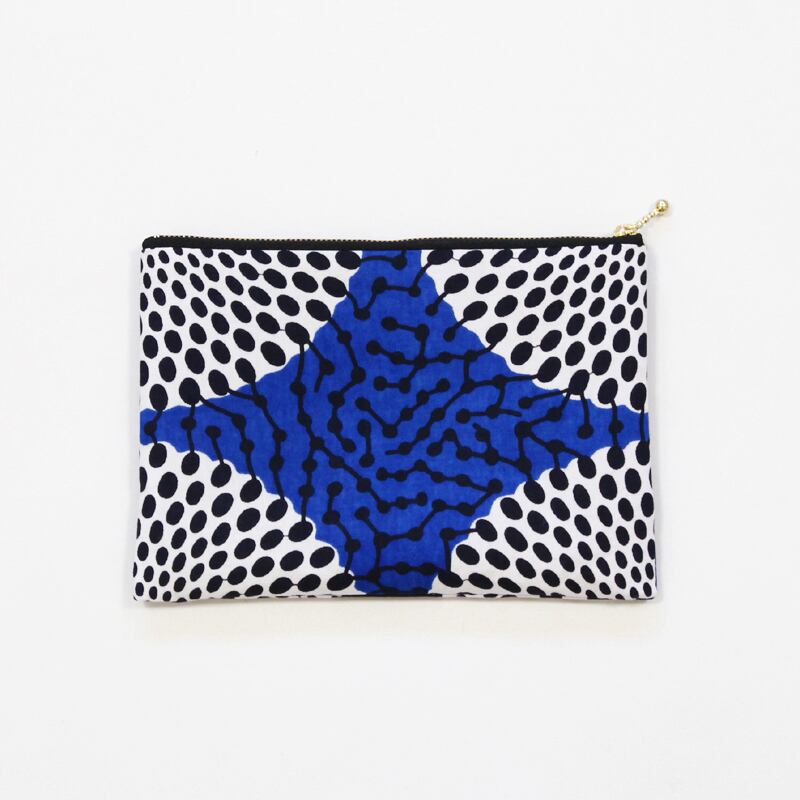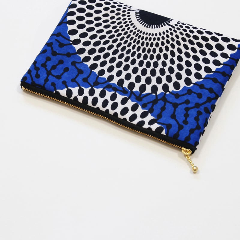 アフリカ布で作った、鮮やかなマチ無しフラットポーチです。