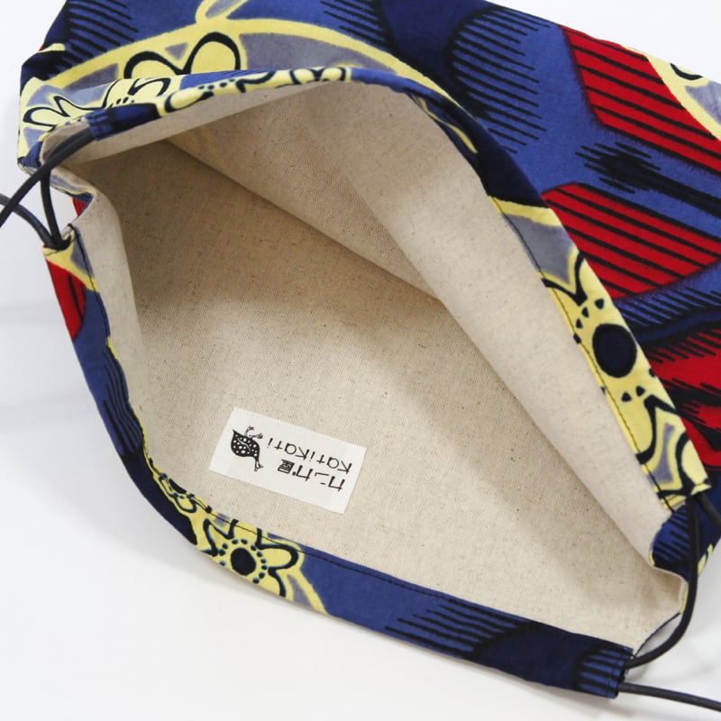 【 素材 】アフリカ布(綿100%)、裏地(綿麻キャンバス)